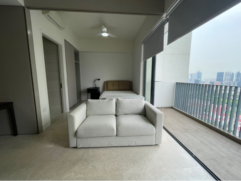 Step into a bright and airy sanctuary at Highline Residences, where abundant natural light floods the space through floor-to-ceiling sliding glass doors. The stunning views of the city skyline and lush greenery create a serene backdrop, inviting you to unwind in your own private oasis.
