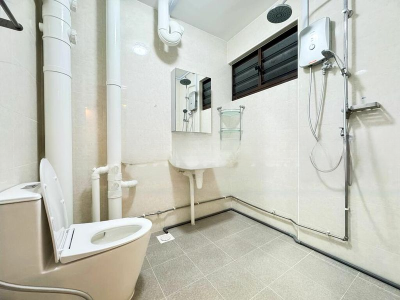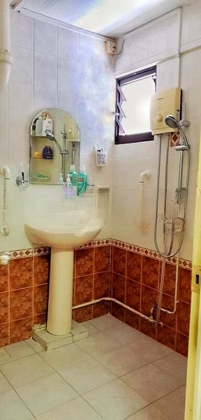 This well-maintained unit boasts three spacious bedrooms, each fitted with parquet wood flooring and full-height mirrored wardrobes that enhance the feeling of space. The bathrooms are equipped with a rain shower and an instant water heater, ensuring a refreshing experience. With a practical layout and partial renovations, this home is ready for your personal touch.