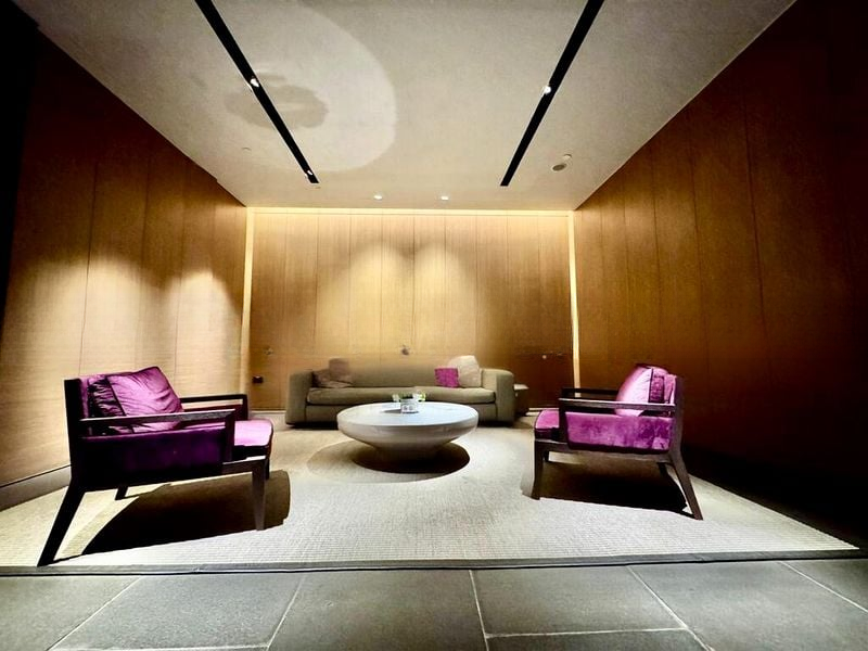 Step into a bright and airy sanctuary where abundant natural light floods through floor-to-ceiling windows, illuminating the marble-look flooring and creating a warm, inviting ambiance. The spacious balcony offers stunning views of the pool and lush greenery, making it the perfect spot to unwind after a long day.
