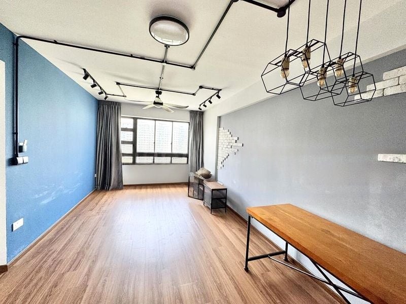 Step into this well-maintained 3-bedroom flat and feel the bright and airy ambiance that welcomes you. The spacious open-plan living and dining area is adorned with tiled flooring and a large window, allowing natural light to fill the space. The yellow accent wall in the dining area adds a cheerful touch, while the full-height built-in wardrobes in the master bedroom offer both style and functionality.