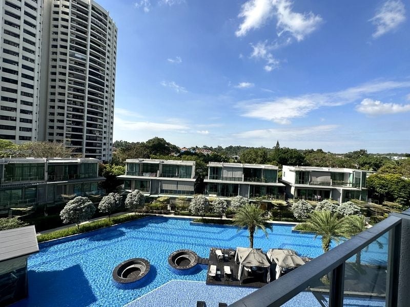Step into a world of elegance at PEAK RESIDENCE, where abundant natural light floods through floor-to-ceiling windows, illuminating the airy interiors. The minimalist design and light wood flooring create a serene ambiance, while the breathtaking views of lush greenery and the city skyline invite you to unwind and enjoy your surroundings.