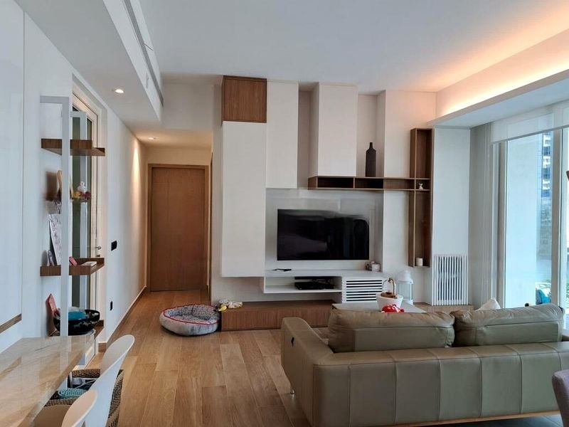 Step into a bright and airy sanctuary where abundant natural light floods through floor-to-ceiling windows, illuminating the elegant marble flooring of the open-concept living and dining area. The seamless flow to the balcony invites you to unwind while soaking in breathtaking urban views, creating an inviting ambiance perfect for both relaxation and entertaining.