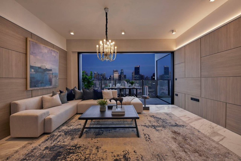 Step into a world of modern luxury where abundant natural light floods this brand-new unit at The Landmark. The open-concept living room, adorned with elegant wood-paneled walls and a designer chandelier, seamlessly connects to a private balcony offering breathtaking panoramic views of the city skyline. Marble flooring throughout enhances the sophisticated ambiance, making every moment spent here feel extraordinary.