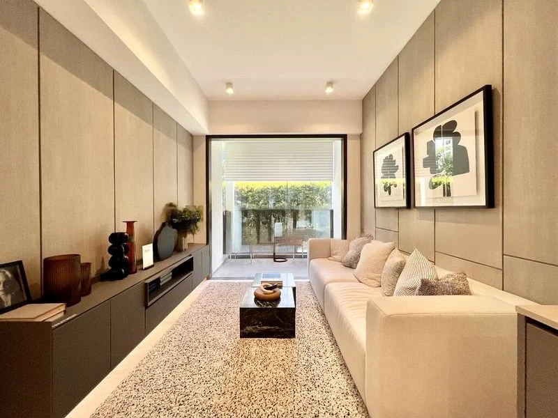 Step into a world of elegance as you enter this brand-new 1-bedroom unit at The Landmark. The open-concept living area, adorned with exquisite marble-look floor tiles, invites abundant natural light through floor-to-ceiling windows, offering breathtaking views of both lush greenery and the vibrant city skyline. The minimalist ambiance creates a serene space perfect for relaxation.