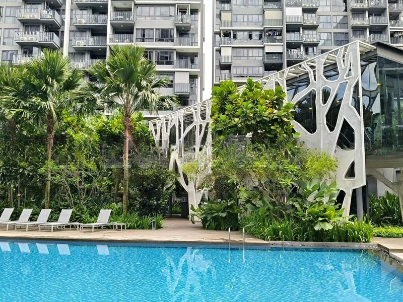 This well-designed 2-bedroom unit features large floor-to-ceiling windows in the bedroom, allowing for stunning views while you unwind. The integrated study area is perfect for remote work, with ample natural light to keep you energized. Enjoy outdoor dining on your private balcony, overlooking the expansive swimming pool and verdant greenery, perfect for relaxation and entertaining.