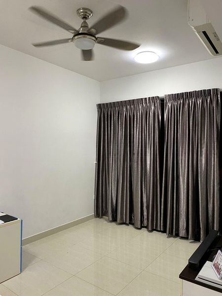 Step into a sanctuary of modern minimalism, where polished floor tiles and an abundance of natural light create an inviting atmosphere. The living room, adorned with sliding glass doors, seamlessly connects to a private balcony, offering a serene urban view that enhances your living experience.