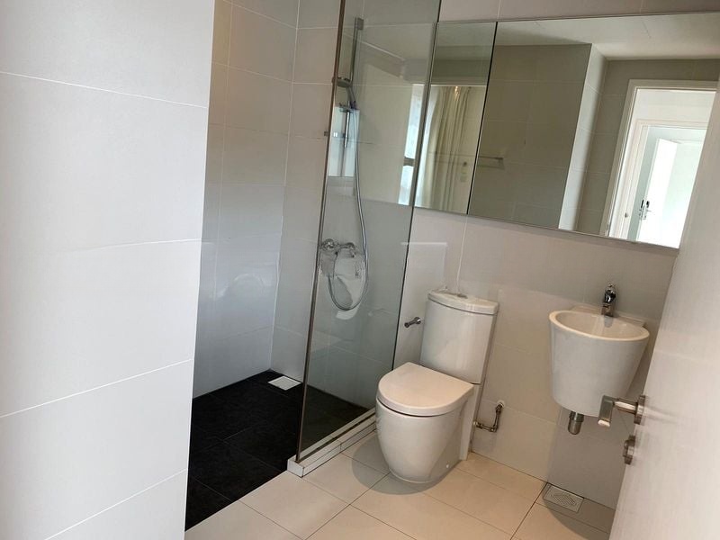 This well-maintained 2-bedroom unit features an open-concept kitchen equipped with built-in Electrolux appliances and two-tone cabinetry, seamlessly flowing into the spacious living area adorned with white floor tiles and track lighting. Retreat to the bedrooms, where wood-look laminate flooring and floor-to-ceiling wardrobes provide both comfort and practicality. Enjoy exclusive access to the rooftop lap pool and garden, perfect for relaxation and entertaining amidst stunning vistas.