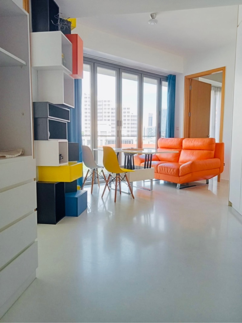 Step into a world of contemporary elegance as you enter this well-maintained 1-bedroom unit at VIVACE. The modern minimalist design is accentuated by natural light filtering through large windows, creating a warm and inviting ambiance. The urban view from the balcony, with its wooden decking and glass railing, offers a perfect spot to unwind after a long day.