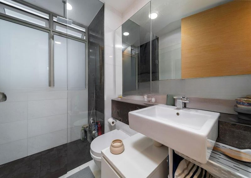 Step into a sanctuary of modern minimalism at RV Residences, where abundant natural light floods the open-plan living area through floor-to-ceiling windows, creating a warm and inviting ambiance. The polished tile flooring and sleek finishes enhance the sense of space, while the balcony invites you to enjoy serene greenery views, perfect for unwinding after a long day.