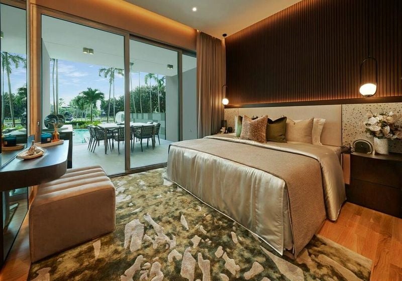Step into a world of elegance as you enter this designer unit at The Residences at W Singapore Sentosa Cove. The abundant natural light floods the open-concept living area, highlighting the exquisite marble flooring and the captivating views of the waterway and city skyline through the floor-to-ceiling glass doors. The ambiance is both luxurious and modern, making it a perfect sanctuary for relaxation.
