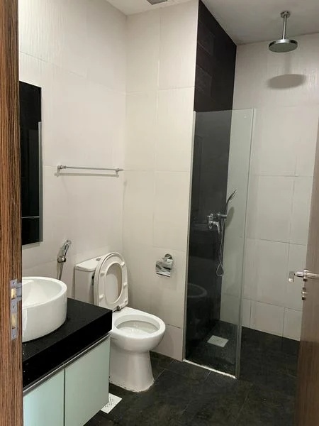 This well-designed 3-bedroom unit features a generous layout with a master bedroom that boasts en-suite access, built-in sliding wardrobes, and wooden flooring that adds warmth to the space. The modern bathroom is equipped with a glass shower enclosure and a stylish vessel sink, while the outdoor bathtub on the balcony offers a unique touch of luxury. Enjoy the convenience of a fully-furnished home that is ready for you to move in.