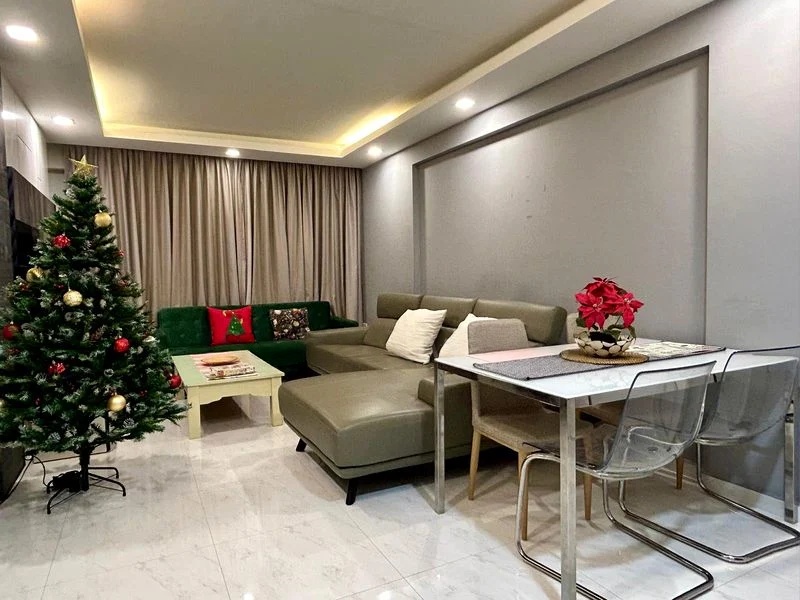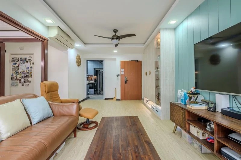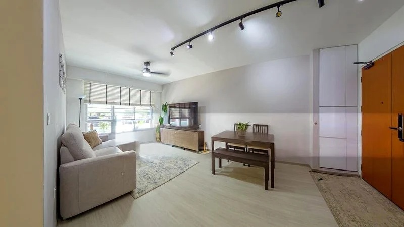 Step into a bright and airy sanctuary at 890A Tampines Ave 1, where abundant natural light floods the space, accentuating the stunning white brick feature wall in the living room. Large windows frame picturesque views of lush greenery and the urban landscape, creating a serene ambiance that invites relaxation and comfort.