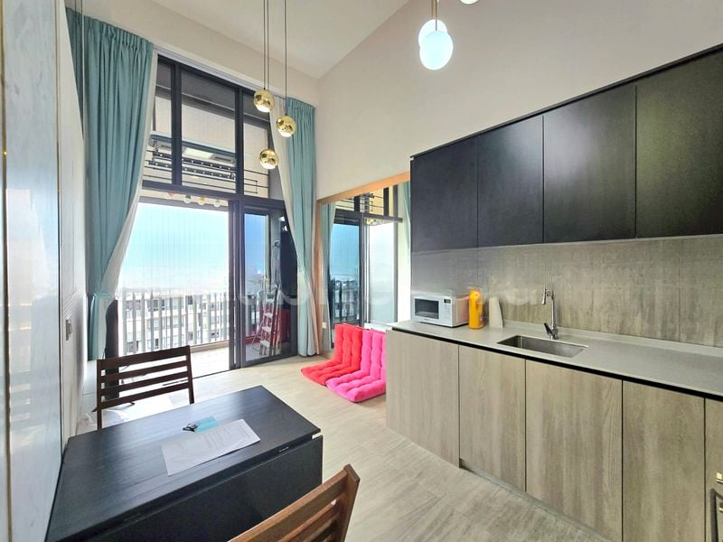 Step into a serene oasis where modern minimalism meets functional elegance. This well-maintained 1-bedroom unit at Grandeur Park Residences greets you with an abundance of natural light filtering through large windows, showcasing lush greenery views that create a tranquil ambiance. The open-concept living area, adorned with light grey floor tiles, seamlessly connects to a private balcony, inviting you to unwind in a peaceful outdoor setting.