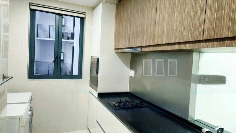 Step into a serene oasis at The Palette, where abundant natural light floods the living area through floor-to-ceiling sliding doors, creating a warm and inviting ambiance. The long balcony offers a perfect spot to unwind, framed by lush greenery that enhances your sense of tranquility.