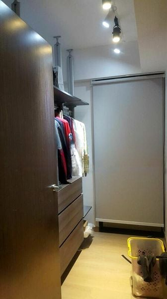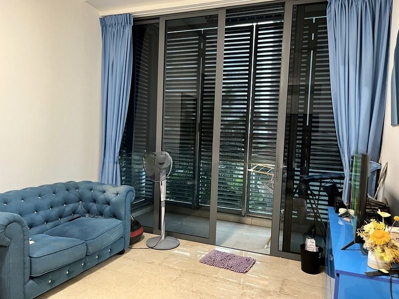 This well-maintained unit features a thoughtful layout with three spacious bedrooms, including a master suite equipped with a walk-in wardrobe area. The bedroom boasts green LED cove lighting and blackout curtains, ensuring a restful night. The living area is complemented by a stylish TV console with ample storage, making it ideal for both entertaining and everyday living.