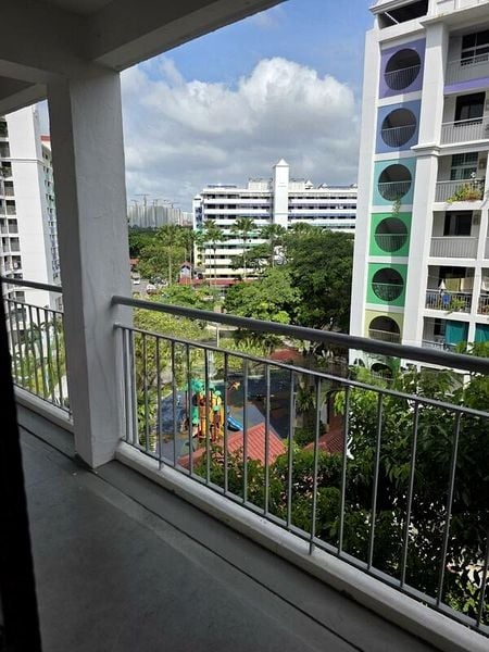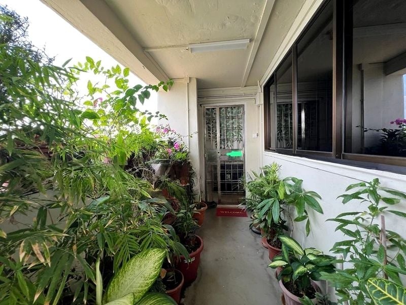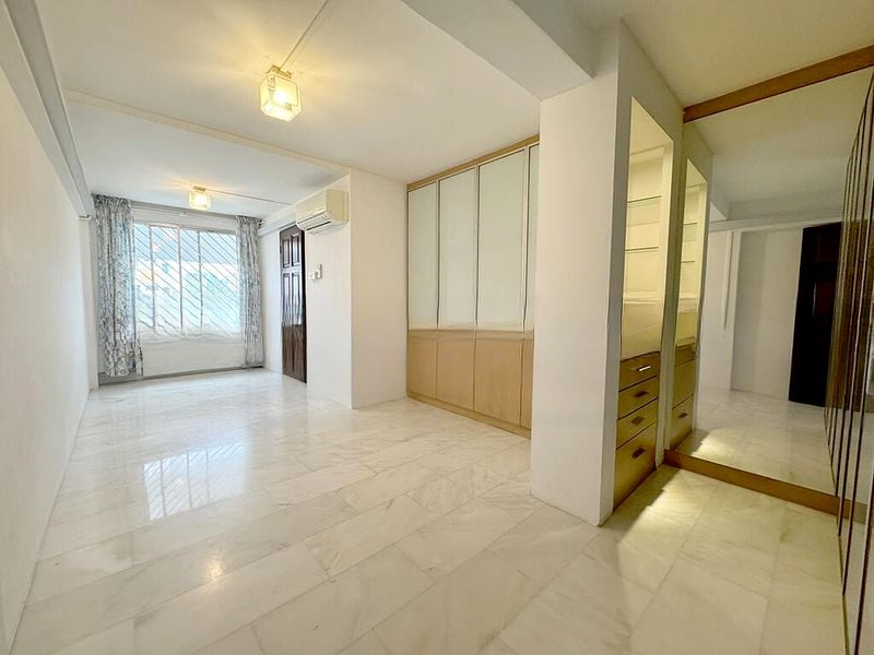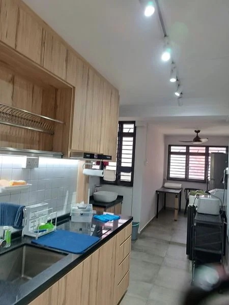 Step into a warm and inviting atmosphere where natural light dances across the light wood-look laminate flooring, enhancing the cozy feel of this well-maintained 4-bedroom HDB flat. The spacious open-plan layout seamlessly connects the living and dining areas, featuring a stylish L-shaped sofa, a glass-top dining table, and elegant pendant lighting that adds a touch of sophistication.