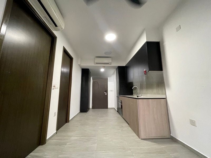 Step into a serene sanctuary where modern minimalist design meets functional elegance. The well-maintained unit welcomes you with an abundance of natural light, highlighting the dual-tone kitchen cabinetry and the expansive views of lush greenery and the urban landscape from the balcony. The ambiance is both inviting and sophisticated, perfect for relaxation or entertaining.