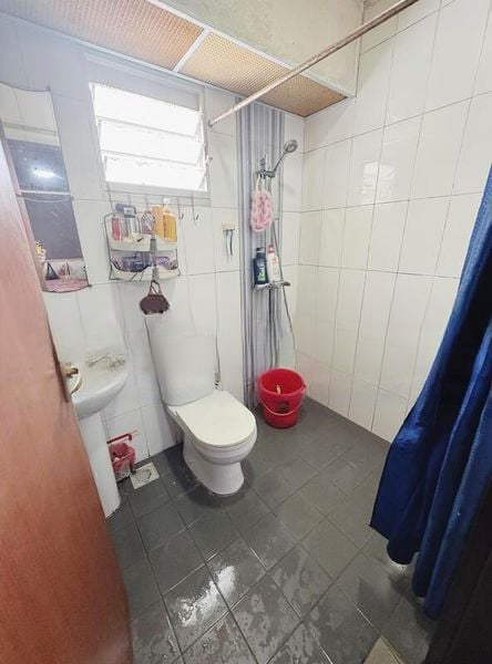 Step into this well-maintained 1-bedroom flat and feel the inviting ambiance created by polished floor tiles and an open-concept living area. Natural light filters through large windows, offering a glimpse of the urban landscape and neighboring HDB blocks, while the ceiling fan adds a touch of comfort to your living space.