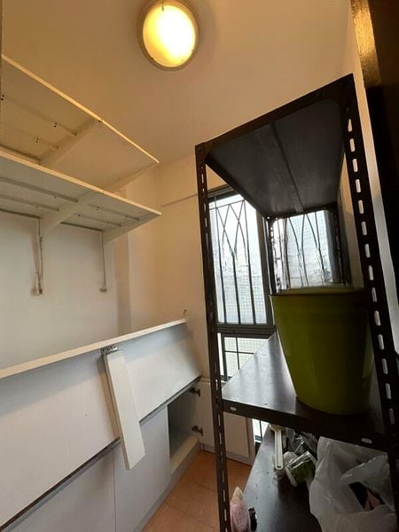 Step into a bright and airy living space that invites you to unwind. The polished stone flooring in the living area reflects natural light, creating a warm ambiance. Enjoy seamless access to the balcony, where you can take in views of neighboring residential blocks and the urban skyline. The open concept layout, complemented by recessed ceiling lights, enhances the spacious feel of this home.