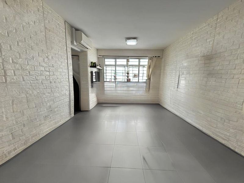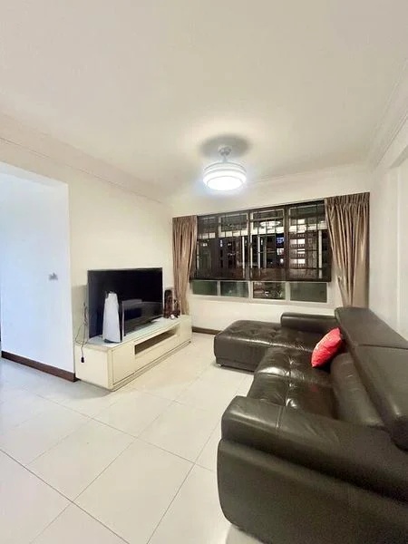 Step into this well-maintained 4-room HDB unit and be greeted by a bright and inviting atmosphere. The vibrant blue kitchen cabinetry paired with sleek black granite countertops creates a striking focal point, while the tiled flooring throughout the living areas enhances the functional elegance of the space. Natural light filters in, illuminating the minimalist design and providing a warm ambiance, perfect for both relaxation and entertaining.
