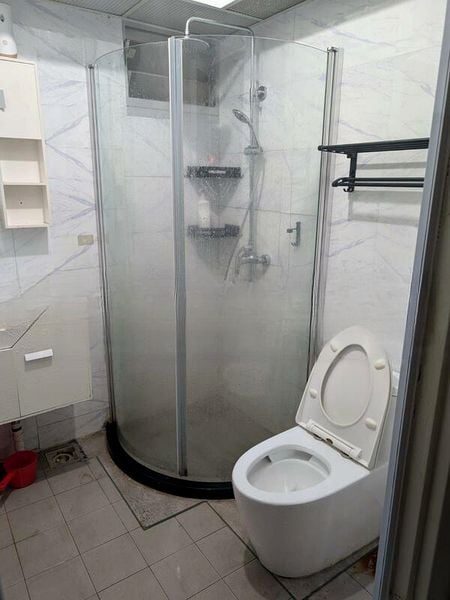 This efficient point block layout features a spacious living and dining area, a master bedroom with an en-suite bathroom, and two additional common bedrooms. The kitchen, designed for practicality, includes an integrated service yard and a household shelter for added storage. The study area, complete with a long wooden work desk, offers a quiet nook for productivity.