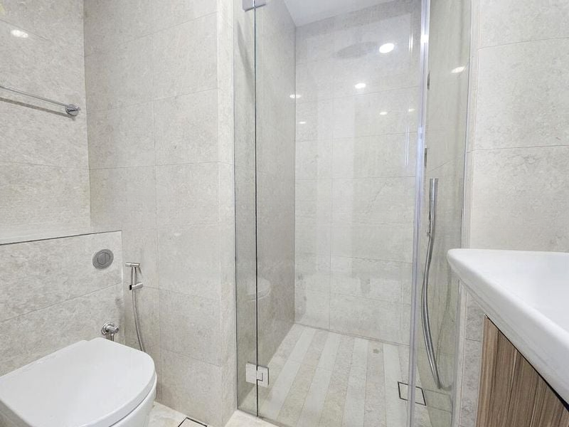 Step into a sanctuary of modern elegance at Pullman Residences Newton, where abundant natural light floods through floor-to-ceiling windows, offering breathtaking views of the city skyline and lush greenery. The open-concept living area, adorned with marble-look floor tiles, creates a seamless flow that invites relaxation and entertainment, while the recessed lighting enhances the minimalist ambiance.
