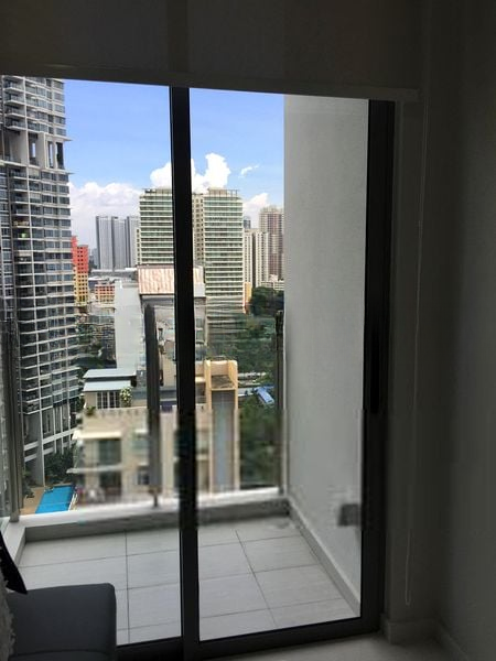 Step into a world of modern elegance as you enter this beautifully renovated unit at ONE DUSUN RESIDENCES. The open-plan living area welcomes you with its bright ambiance, featuring white minimalist cabinetry and a compact dining space that seamlessly integrates with the kitchenette. The large window offers a stunning view of the city skyline, filling the space with natural light and a sense of tranquility.