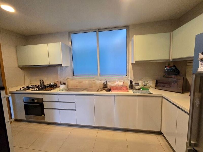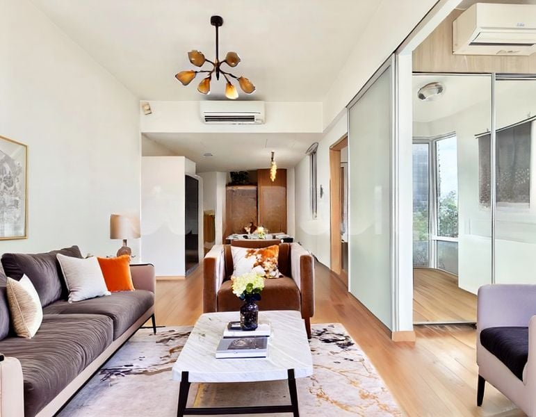 Step into this beautifully maintained unit at Tribeca and be greeted by an abundance of natural light streaming through floor-to-ceiling sliding glass doors. The cozy ambiance is enhanced by warm wood laminate flooring and a spacious balcony that offers unobstructed views of the city skyline and lush urban greenery, creating a perfect retreat for relaxation.