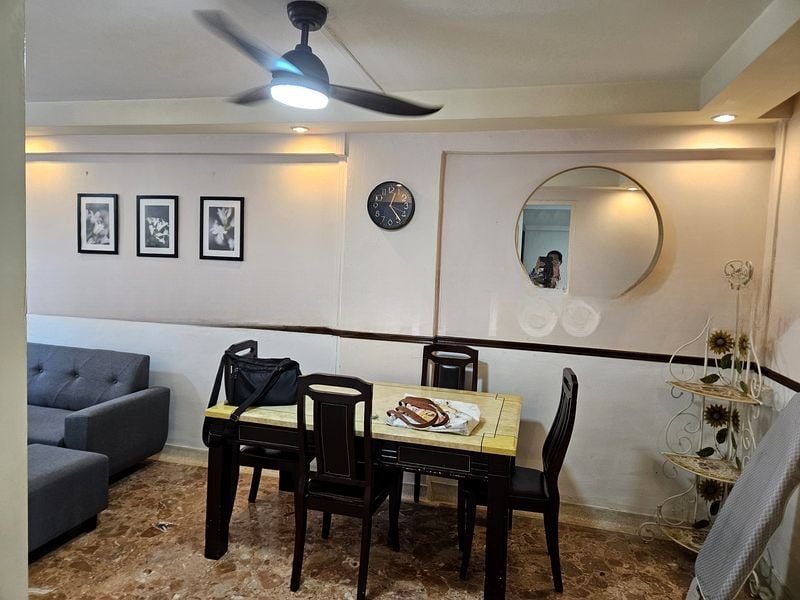 Step into this inviting 2-bedroom flat at 77 Bedok North Road, where a sense of warmth and functionality greets you. The moderate natural light filters through the windows, illuminating the lived-in spaces, while the urban views of neighboring buildings provide a vibrant backdrop to your daily life. The fully-furnished unit features original finishes that reflect its character, with a practical layout designed for comfortable living.