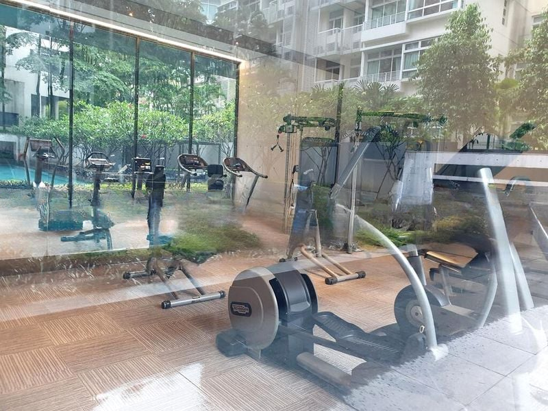 Step into a world of modern elegance as you enter this beautifully designed unit at Lloyd Sixtyfive. The double-volume high ceiling creates an airy ambiance, complemented by dark wood flooring and integrated LED strip lighting that enhances the minimalist aesthetic. Enjoy urban views from the floor-to-ceiling windows in the bedroom, while the living room invites you to relax under the recessed ceiling spotlights.
