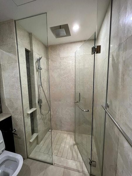 Step into a bright and airy sanctuary at Commonwealth Towers, where abundant natural light floods the open-concept living space. The marble-look floor tiles and ceiling fans create a refreshing ambiance, while the panoramic views of the city skyline from the balcony invite you to unwind in style.