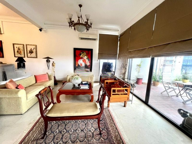 This expansive 6-bedroom, 5-bathroom unit boasts a well-thought-out layout, perfect for both relaxation and entertaining. The spacious common corridor, adorned with recessed ceiling lighting and wooden double unit doors, leads you seamlessly into the living room, where the polished stone flooring continues to impress. With ample space and potential for personalization, this unfurnished unit is a blank canvas awaiting your creative touch.