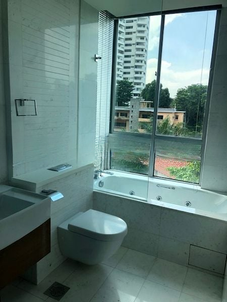 Step into a world of elegance and tranquility at ONE TREE HILL RESIDENCE, where abundant natural light floods the space, accentuating the polished marble flooring and modern finishes. The airy ambiance invites you to unwind, while the large window ledges offer unblocked views of lush greenery and the city skyline, creating a serene backdrop for your daily life.