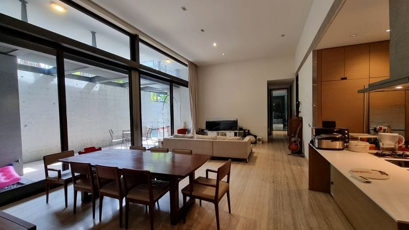 Step into a bright and airy sanctuary at Goodwood Residence, where abundant natural light floods through floor-to-ceiling glass sliding doors, offering captivating views of the pool and lush greenery. The designer finishes and high ceilings create an inviting ambiance, making every corner of this well-maintained unit feel luxurious and spacious.