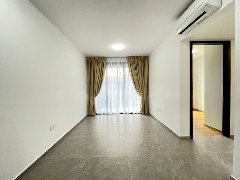 This well-maintained 2-bedroom, 2-bathroom unit boasts standout features including a compact kitchen with built-in cabinets and an integrated oven, a stylish bathroom with a glass-enclosed walk-in shower, and polished wood-look parquet flooring in the bedrooms. The modern minimalist design is complemented by a full-height sliding wardrobe and ceiling fans in every room, ensuring comfort and style throughout.