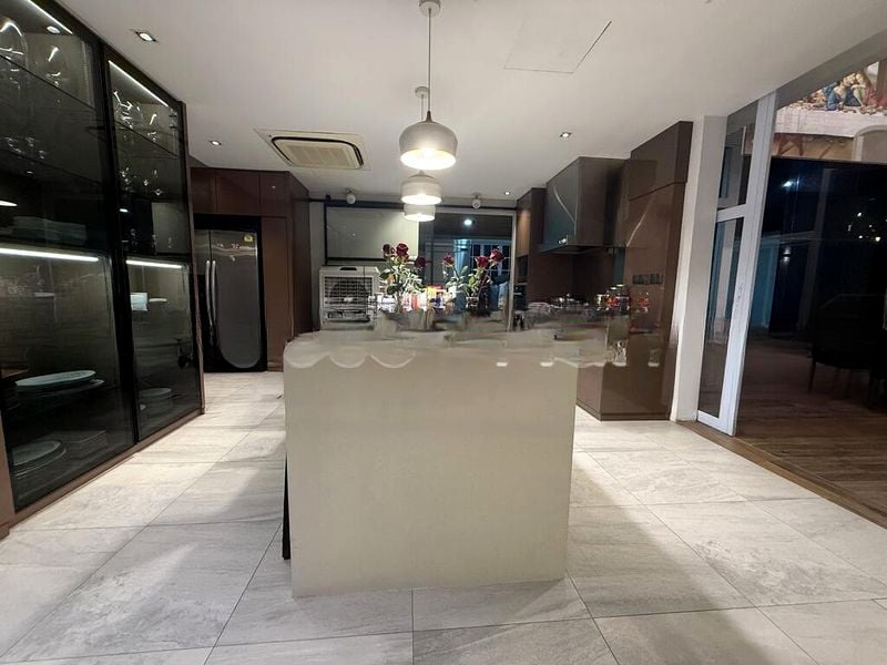 This well-maintained unit boasts a generous layout with five spacious bedrooms, each equipped with ceiling fans and air conditioning for your comfort. The living room features an L-shaped white sofa, perfect for relaxation, while the dining area opens directly to the garden, ideal for entertaining guests or enjoying quiet moments. With modern finishes and a partial renovation, this condo is ready for you to move in and make it your own.