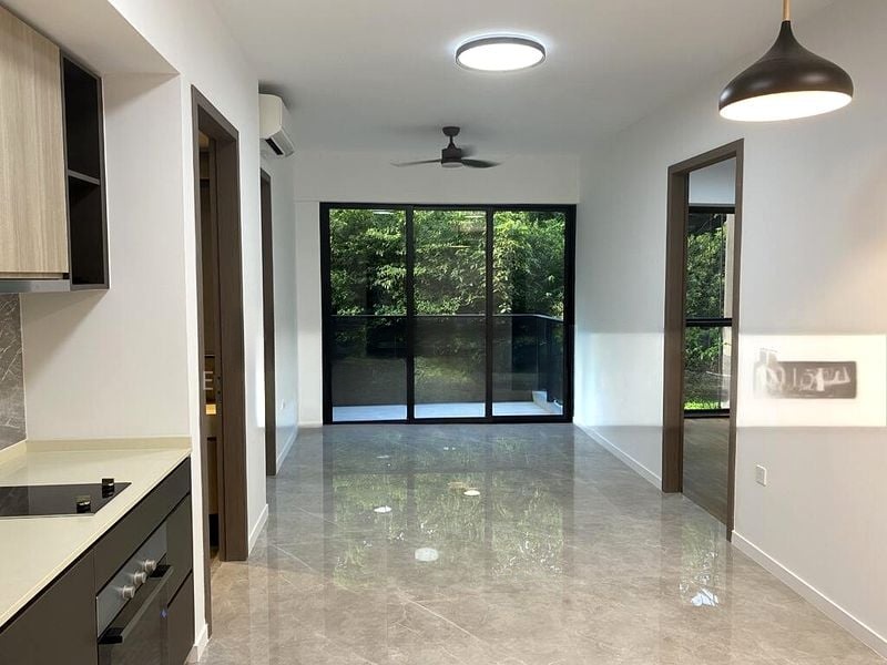Step into a sanctuary of light and space at Kent Ridge Hill Residences, where abundant natural light pours through floor-to-ceiling windows, illuminating the polished marble-look flooring. The airy ambiance invites you to unwind while enjoying views of lush greenery and neighboring buildings from your private balcony.