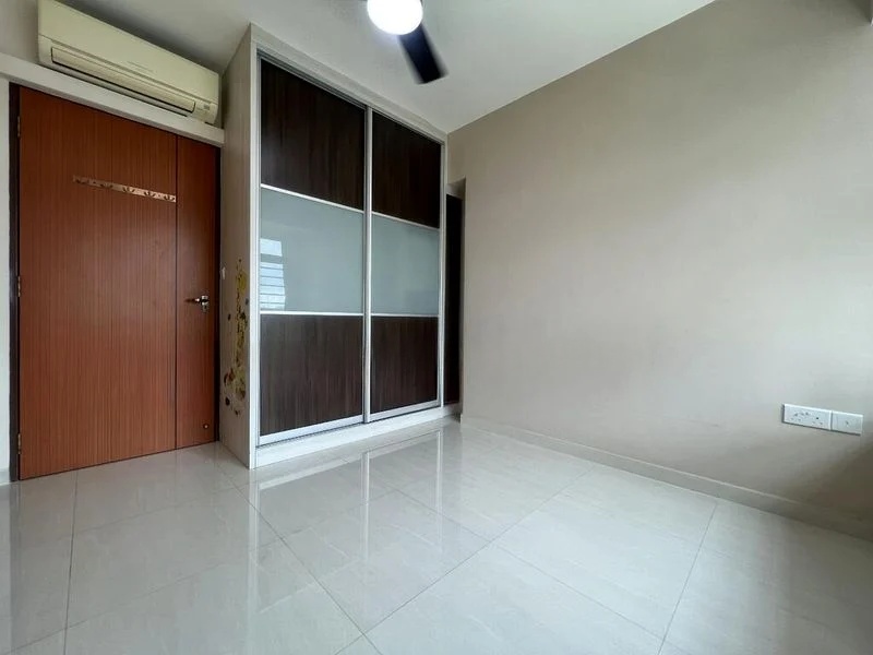 This unit features three bedrooms, each equipped with ceiling fans and wall-mounted air conditioning for your comfort. The master bedroom boasts a large window, while the second bedroom offers a view of HDB blocks, ensuring a cozy retreat. The fully-furnished space is perfect for families looking to make it their own, with a dining set and leather sofa ready for gatherings.