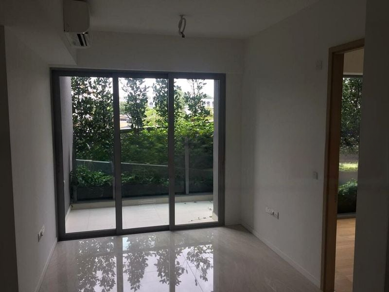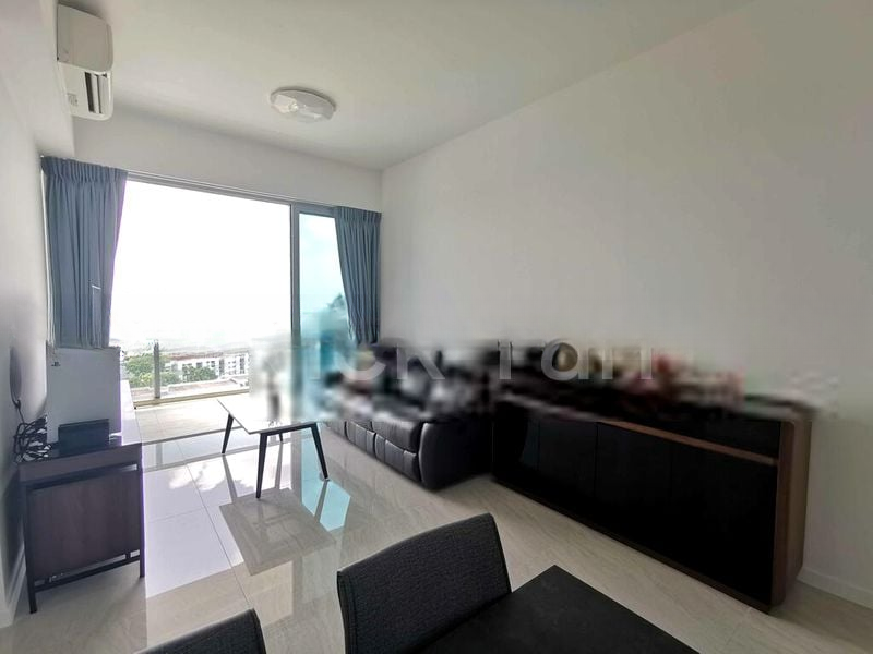 Step into a sanctuary of light and space, where abundant natural light floods through floor-to-ceiling windows, creating a bright and airy ambiance. The glossy floor tiles in the living room reflect the city lights, while the balcony offers unobstructed views of lush greenery, inviting you to unwind in a serene setting.