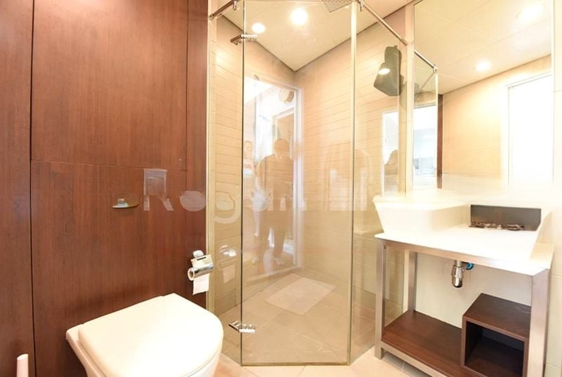 This well-maintained 1-bedroom unit features a modern studio concept, complete with a built-in wardrobe and air conditioning for your comfort. The kitchen boasts high-end Miele appliances and frosted glass cabinets, seamlessly integrated with a washing machine for convenience. The bathroom is designed with modern fixtures and a glass shower enclosure, adding a touch of sophistication to your daily routine.