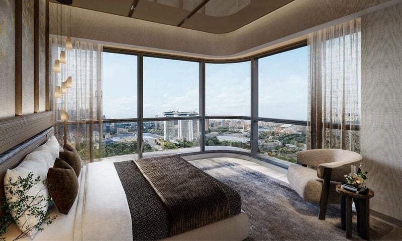 Step into a bright and airy sanctuary at The Sail @ Marina Bay, where abundant natural light floods the space through floor-to-ceiling windows. The elegant chandelier in the living room complements the wood flooring, creating an inviting ambiance that feels both luxurious and comfortable. Enjoy breathtaking views of the city skyline, tennis courts, and pool from your own home.