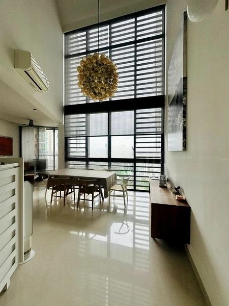 Step into a world of modern luxury as you enter this beautifully designed unit at The Crest. The high ceilings and floor-to-ceiling windows create an airy ambiance, flooding the space with abundant natural light while offering serene views of lush greenery. The elegant wood-paneled feature wall and marble flooring enhance the sophisticated atmosphere, making every moment spent here feel special.