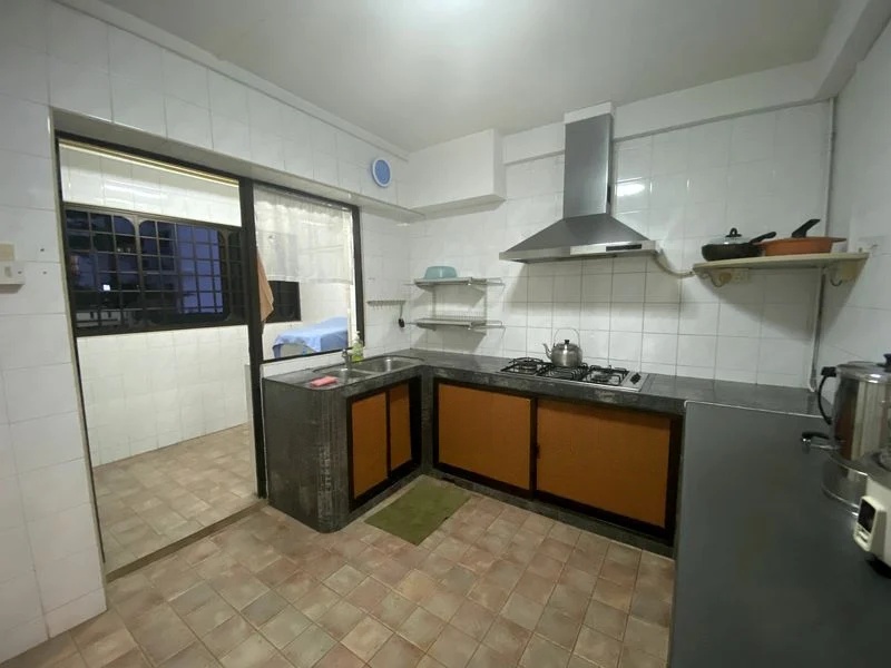 This thoughtfully designed unit features a master bedroom with an ensuite bathroom, complete with safety grab bars and a stylish shower enclosure. Each bedroom is equipped with built-in wardrobes and integrated study desks, ensuring ample storage and workspace. The L-shaped kitchen, fitted with a gas hob and stainless steel range hood, flows seamlessly into the adjacent utility area, perfect for your culinary adventures.