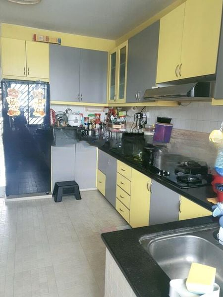 Step into this beautifully renovated 3-room flat and be greeted by a modern minimalist ambiance, accentuated by recessed cove lighting and dark wood-look laminate flooring. The living room, bathed in moderate natural light, features a spacious L-shaped sofa, creating a cozy yet stylish atmosphere. Enjoy urban views of HDB blocks from the comfort of your home, enhancing the overall appeal of this well-maintained unit.