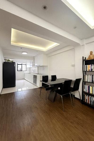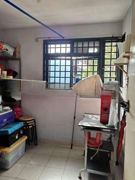 Step into this spacious HDB flat and be greeted by the timeless charm of terrazzo flooring that flows throughout the living area. The moderate natural light filters in, creating a warm ambiance that invites you to unwind. While the views are of neighboring residential buildings, the layout offers a practical and functional living space, perfect for those who appreciate utility.