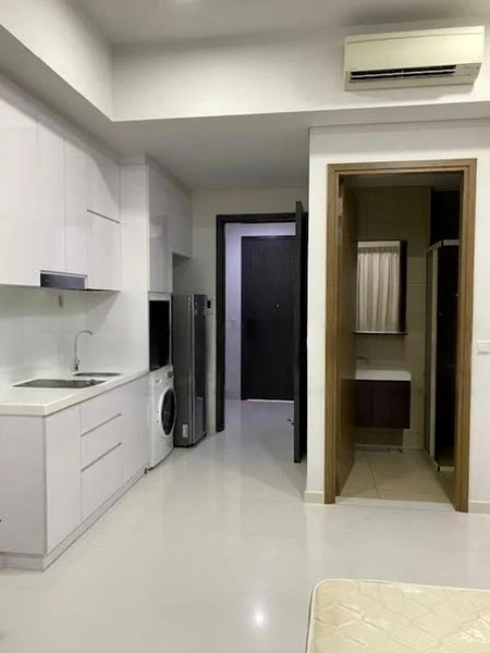 Step into this beautifully maintained unit at LIIV RESIDENCES and be greeted by an abundance of natural light that floods the open living space. The modern minimalist design is accentuated by floor-to-ceiling curtains and a seamless glass balcony railing, creating a serene ambiance that invites relaxation. Enjoy picturesque views of lush greenery and neighboring buildings from your private balcony, perfect for unwinding after a long day.