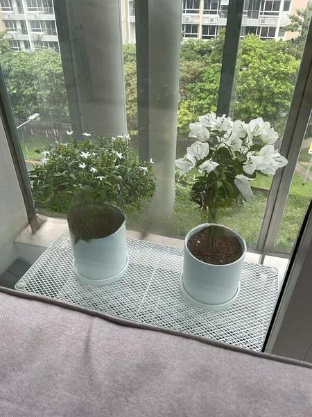 Step into a sanctuary of modern minimalism where abundant natural light floods the space, accentuating the sleek marble-look floor tiles and inviting ambiance. The large windows in the living area frame serene views of lush greenery, creating a tranquil retreat amidst urban living.
