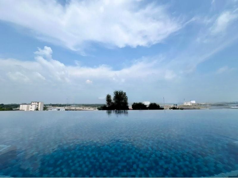 This well-maintained 2-bedroom unit features an open layout that seamlessly connects the living area to the outdoor spaces. Enjoy the luxury of an infinity pool adorned with blue mosaic tiles and waterfall spouts, complemented by a chic rooftop lounge with stylish wooden decking and modern furnishings. The outdoor gym offers fitness enthusiasts an invigorating workout experience amidst scenic views.