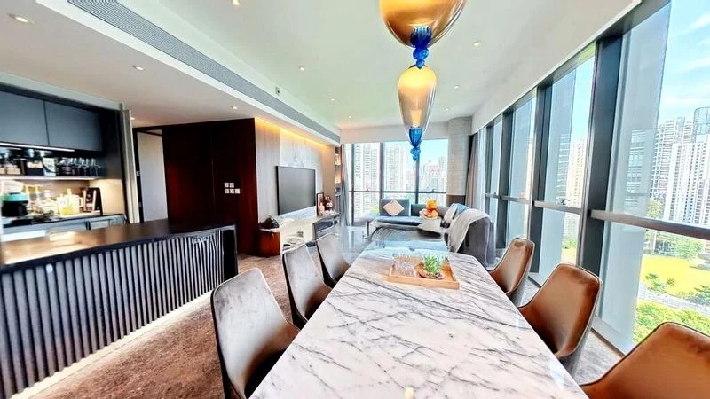 Step into a world of contemporary elegance as you enter this brand-new unit at RIVIERE. Bathed in natural light, the polished marble flooring and floor-to-ceiling windows create an inviting ambiance, while the glass balcony railing offers breathtaking views of the city skyline and surrounding greenery.