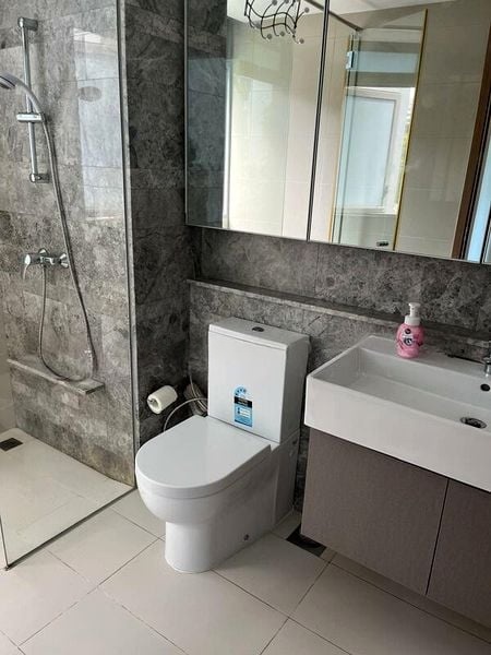 This well-maintained 3-bedroom unit features a seamless layout, perfect for both relaxation and entertaining. The contemporary kitchen boasts two-tone cabinetry, a built-in oven, and a large stainless steel double-door refrigerator. Enjoy outdoor dining on your spacious balcony, complete with wood-look tile flooring and a ceiling fan, or unwind in the luxurious bathroom with marble-look wall tiles and a walk-in shower.